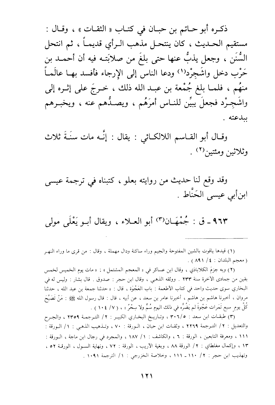 963 ق: جمهان أَبُو العلاء (3) ، ويُقال أَبُو يَعْلَى مولى