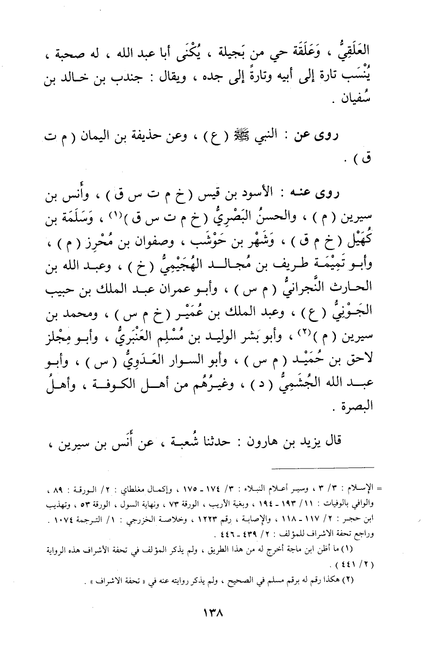 = الاسلام: 3 / 3، وسير أعلام النبلاء: 3 / 175 174، وإكمال مغلطاي: 2 / الورقة: 89، والوافي بالوفيات: 11 / 194 193، وبغية الاريب، الورقة 73، ونهاية السول، الورقة 53، وتهذيب ابن حجر: 2 / 118 117، والاصابة، رقم 1223، وخلاصة الخزرجي: 1 / الترجمة 1074. وراجع تحفة الاشراف للمؤلف: 2 / 446 439.