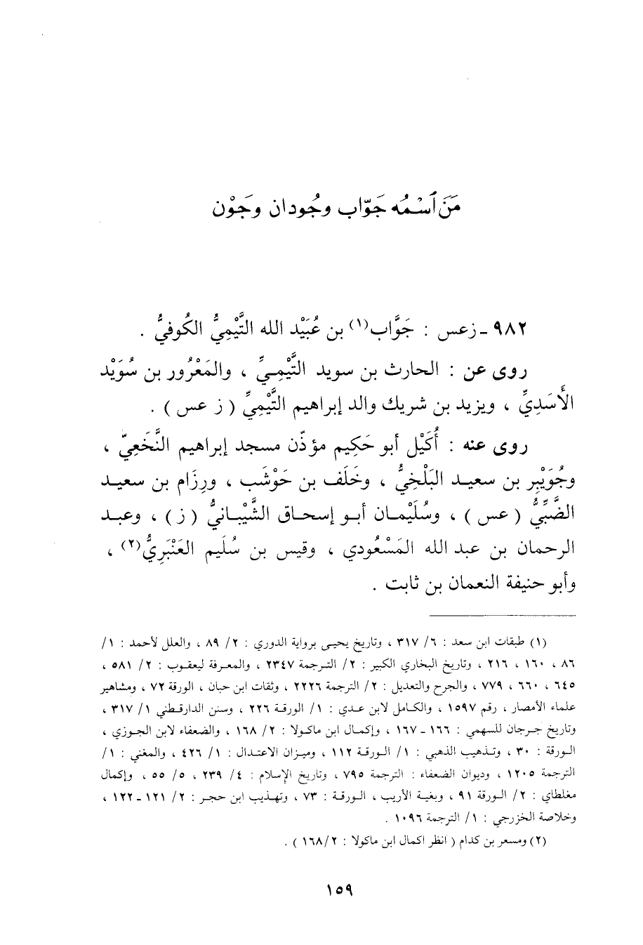 982 زعس: جواب بن عُبَيد اللَّه التَّيْمِيّ الكوفي (1) .