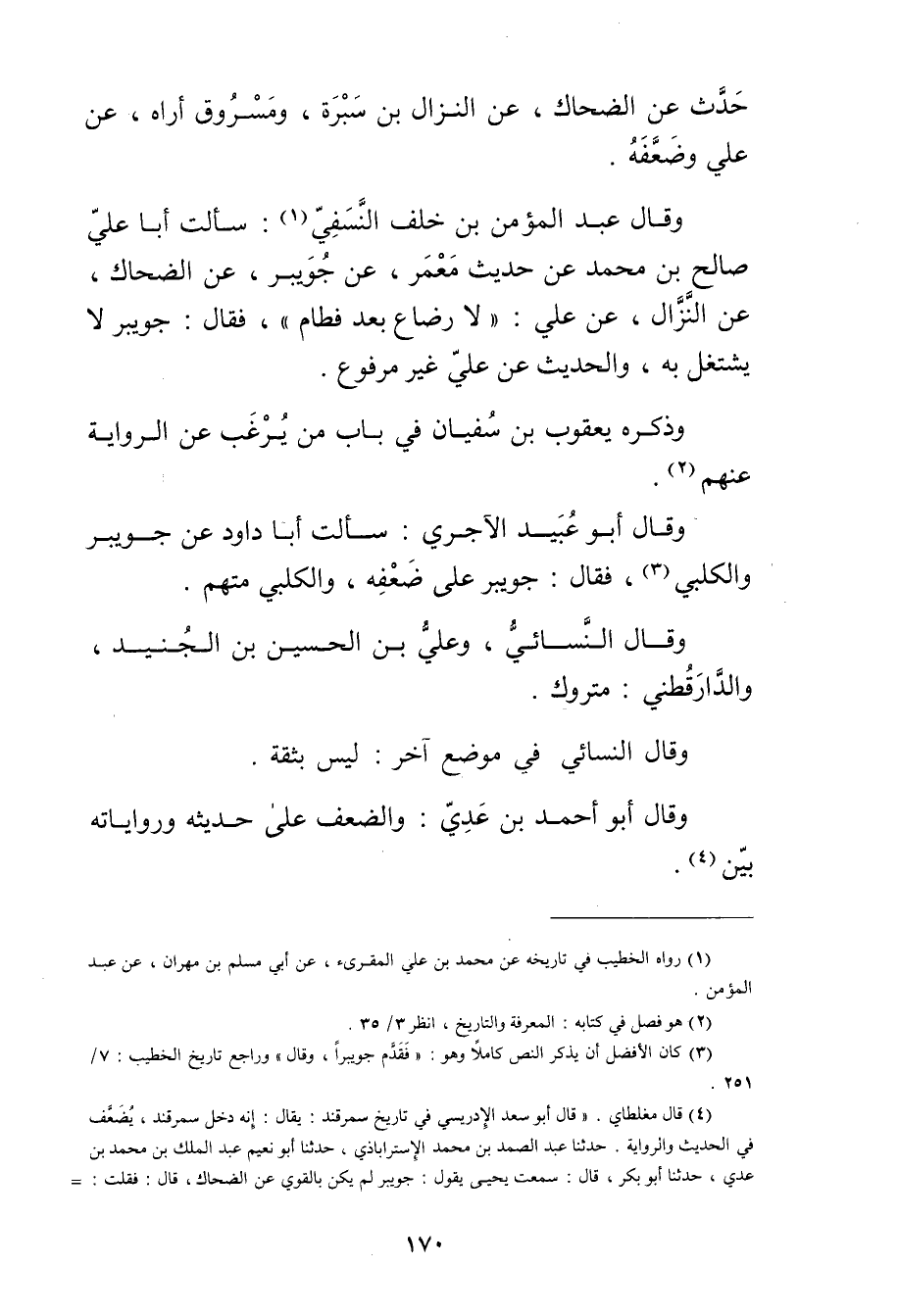 (3) كان الافضل أن ذكر النص كاملا وهو: فقدم جويبرا، وَقَال"وراجع تاريخ الخطيب: 7 / 251.