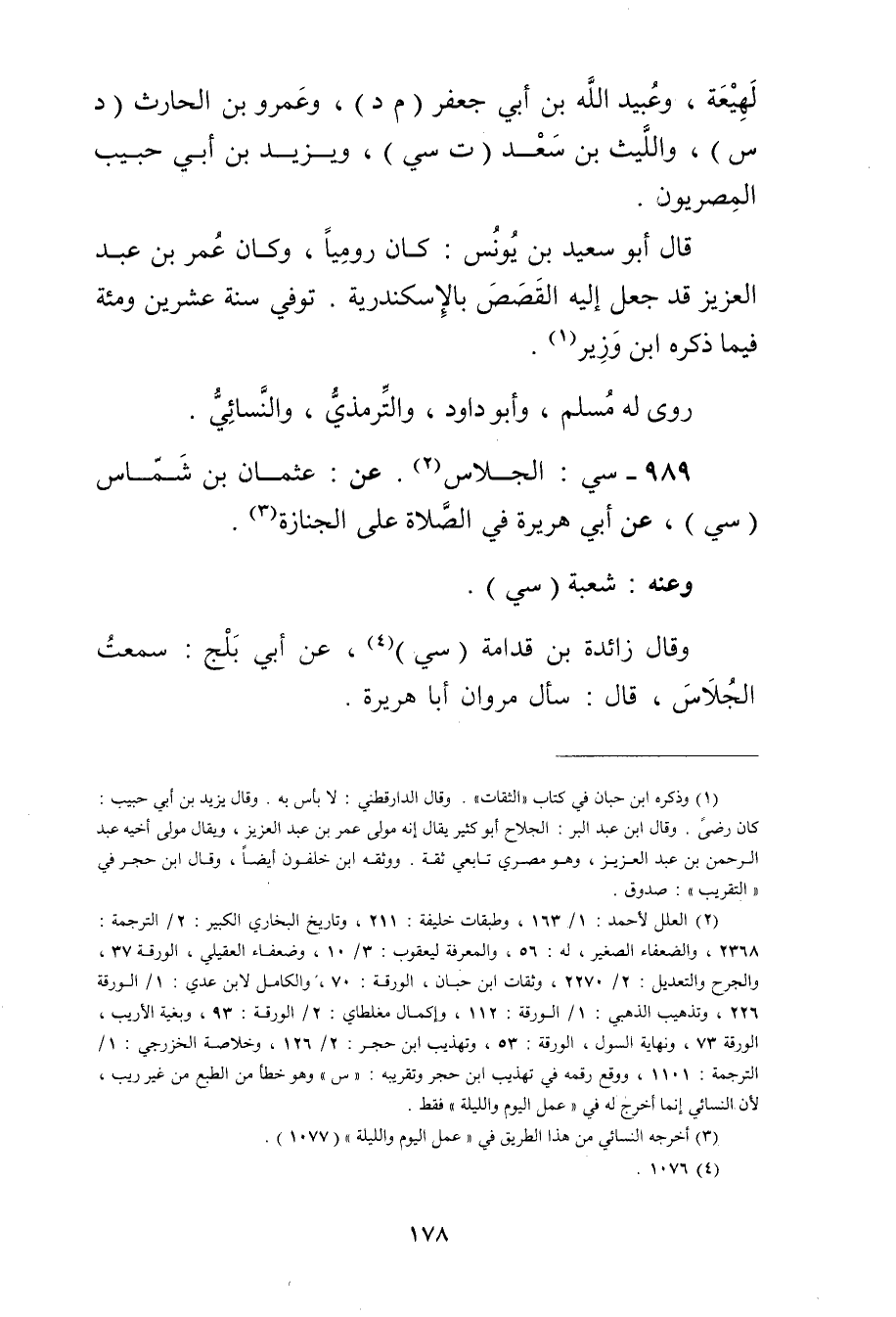 989 سي: الْجُلاسِ. عَن: عْثُمَانَ بْنِ شَمَّاسٍ (2) (سي) ، عَن أَبِي هُرَيْرة في الصلاة على الجنازة (3) .