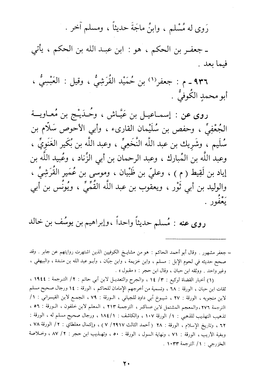 - جعفر بْن الحكم، هو: ابن عَبد اللَّهِ بْن الحكم، يأتي فيما بعد.