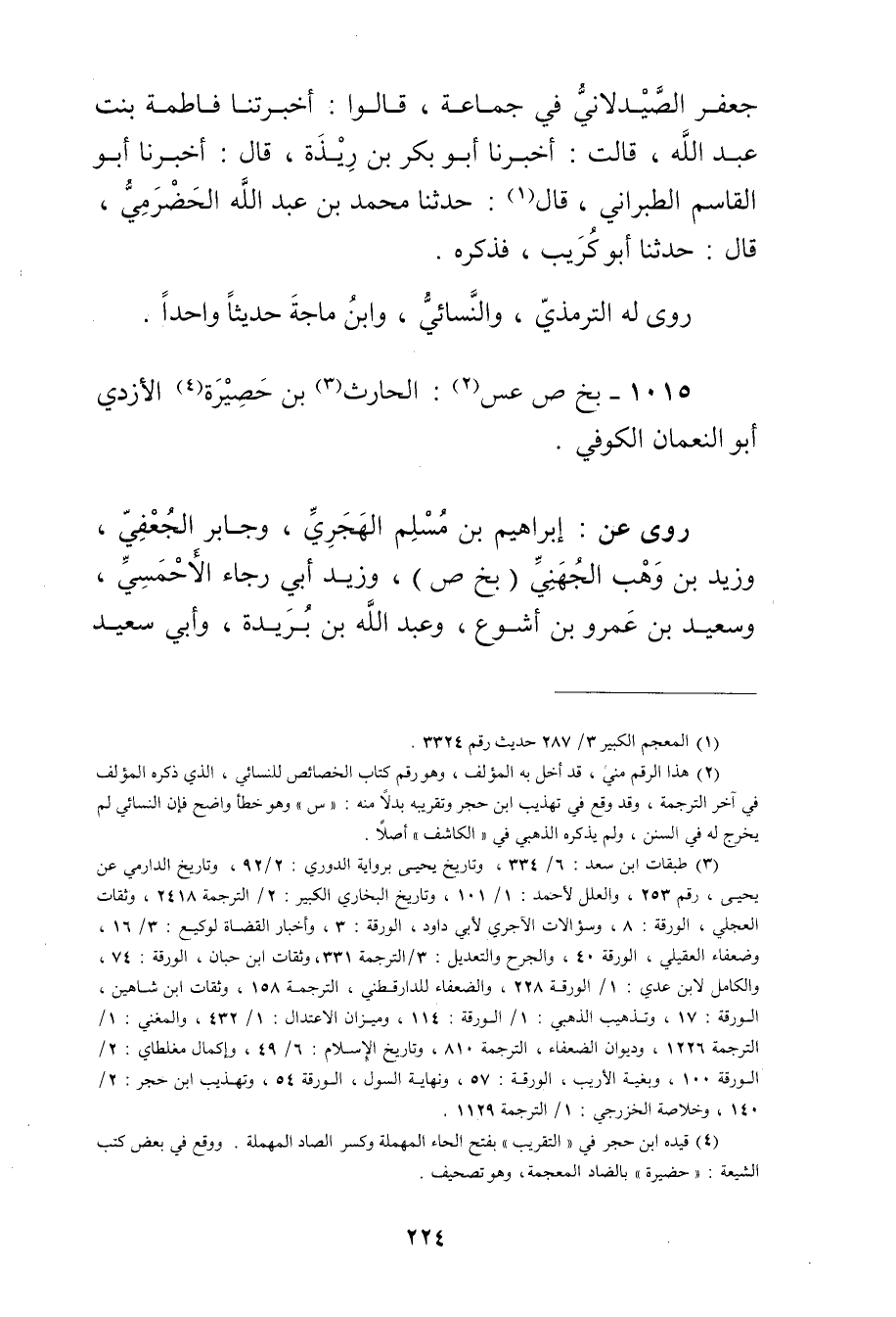 1015 بخ ص عس (2) : الحارث (3) بن حصيرة (4) الأزدي أَبُو النعمان الكوفي.