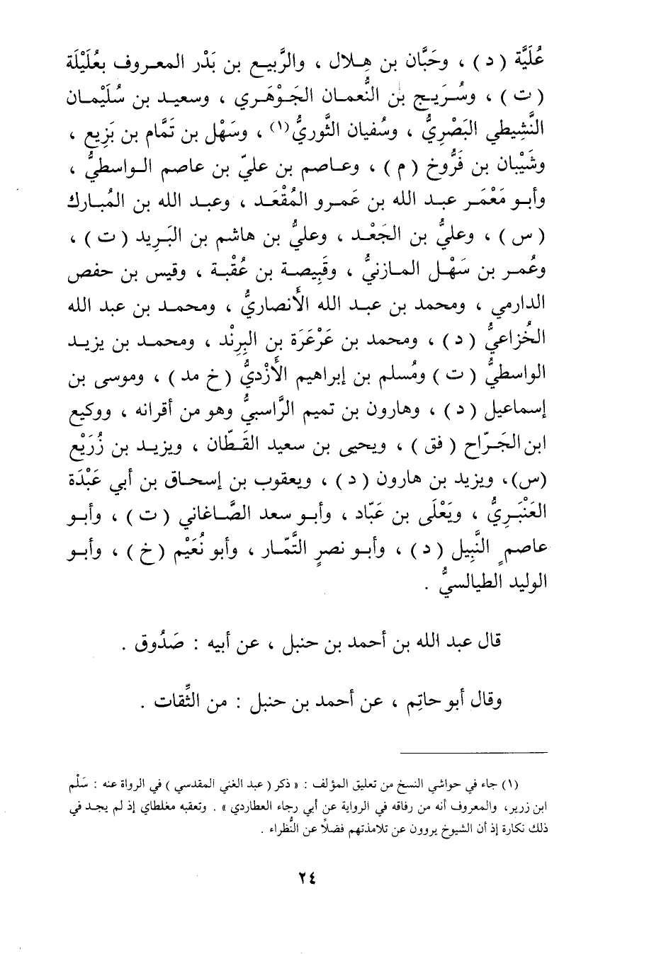 (1) جاء في حواشي النسخ من تعليق المؤلف: ذكر (عبد الغني المقدسي) في الرواة عَنه: سلم ابن زرير، والمعروف أنه من رفاقه في الرواية عَن أبي رجاء العطاردي". وتعقبه مغلطاي إذ لم يجد في ذلك نكارة إذ أن الشيوخ يروون عن تلامذتهم فضلا عن النظراء.