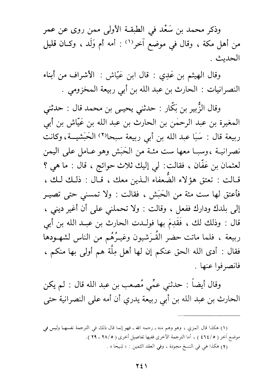 وَقَال أيضا: حَدَّثَنِي عمي مصعب بْن عَبد اللَّهِ قال: لم يكن الحارث بْن عَبد اللَّهِ بْن أَبي ربيعة يدري أن أمه على النصرانية حتى