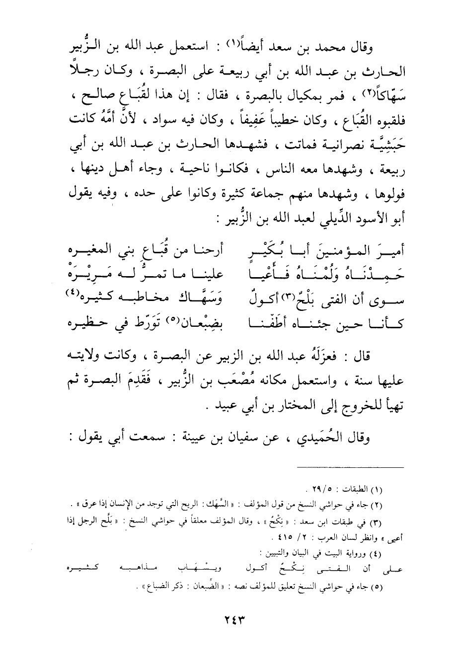 (3) في طبقات ابن سعد: نكح"، وَقَال المؤلف معلقا في حواشي النسخ: بلح الرجل إذا أعيى"وانظر لسان العرب: 2 / 415.