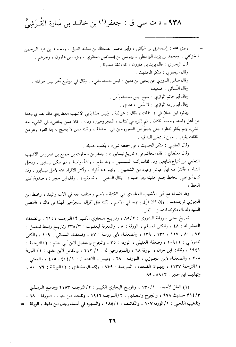 938 د ت سي ق: جعفر بن خالد بن سارة القرشي (1)