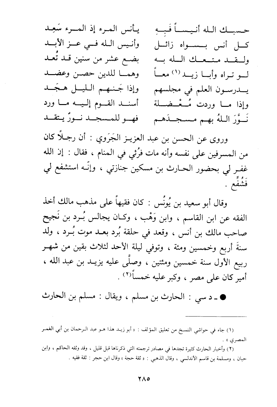 (2) وأخبار الحارث كثيرة تجدها في مصادر ترجمته التي ذكرناها قبل قليل، وقد وثقه الحاكم، وابن حبان، ومسلمة بن قاسم الاندلسي، وَقَال الذهبي: ثقة حجة"وَقَال ابن حجر: ثقة فقيه.