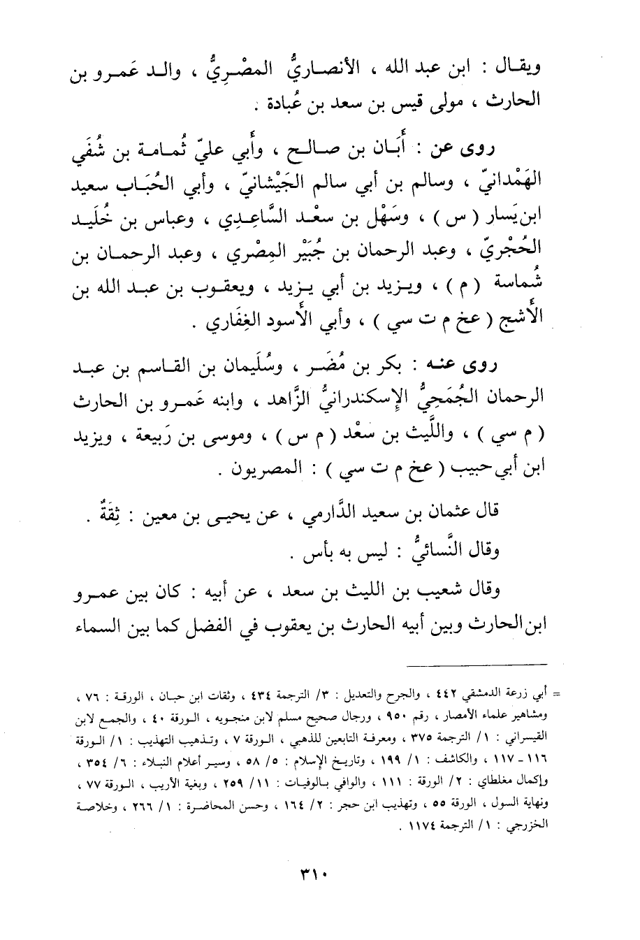 = أبي زرعة الدمشقي 442، والجرح والتعديل: 3 / الترجمة 434، وثقات ابن حبان، الورقة: 76، ومشاهير علماء الامصار، رقم 950، ورجال صحيح مسلم لابن منجويه، الورقة 40، والجمع لابن القيسراني: 1 / الترجمة 375، ومعرفة التابعين للذهبي، الورقة 7، وتذهيب التهذيب: 1 / الورقة 116، 117، والكاشف: 1 / 199، وتاريخ الاسلام: 5 / 58، وسير أعلام النبلاء: 6 / 354، وإكمال مغلطاي: 2 / الورقة: 111، والوافي بالوفيات: 11 / 259، وبغية الاريب، الورقة 77، ونهاية السول، الورقة 55، وتهذيب ابن حجر: 2 / 164، وحسن المحاضرة: 1 / 266، وخلاصة الخزرجي: 1 / الترجمة 1174.