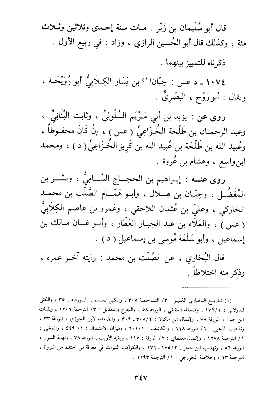 1074 د عس: حبان بن يسار الكِلابي أَبُو رويحة (1) ، ويُقال: أَبُو روح، البَصْرِيّ.