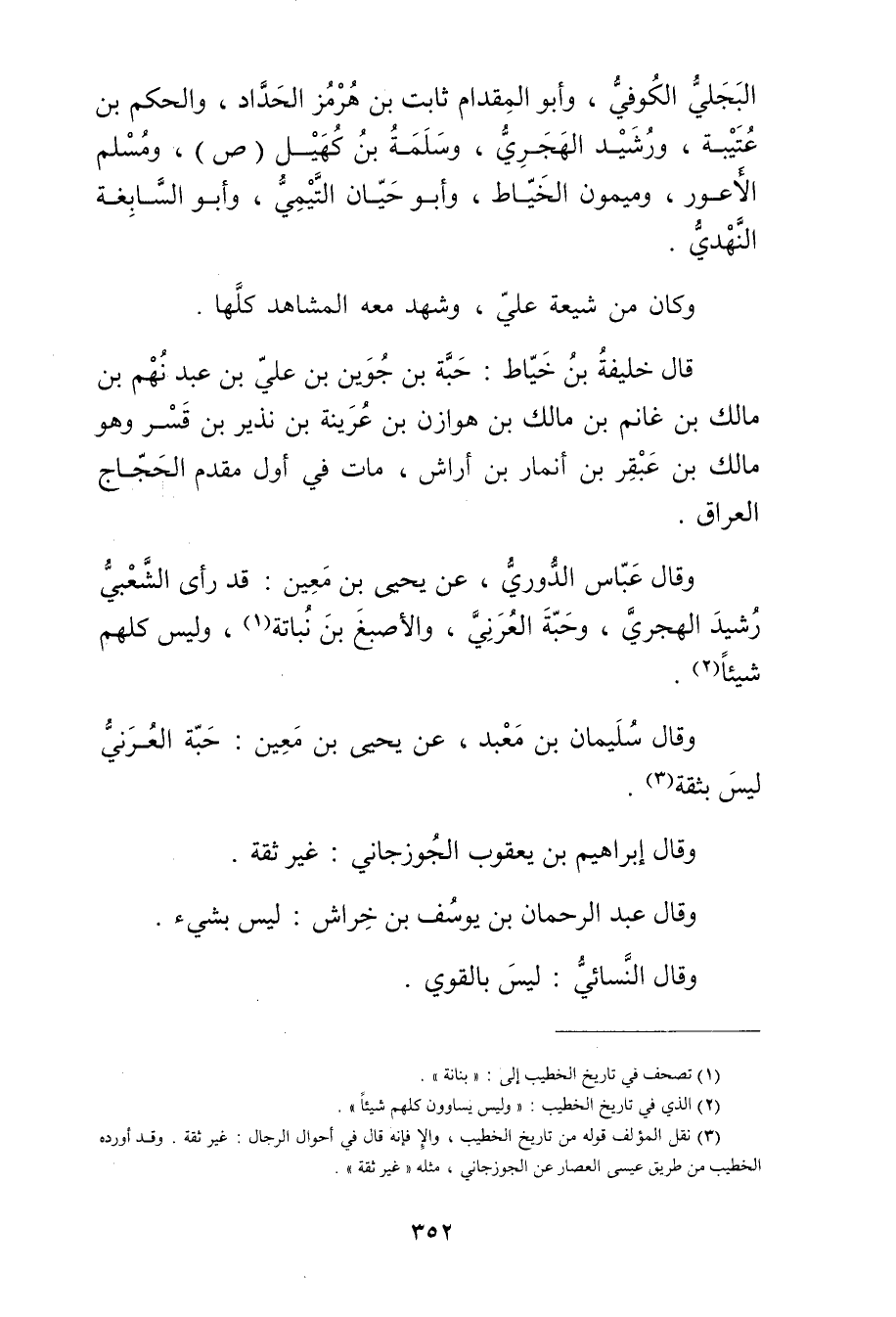 وَقَال عَباس الدُّورِيُّ، وعن يَحْيَى بْن مَعِين:. قد رأى الشعبي رشيد الهجري، وحبة العرني، والأصبغ بْن نباتة (1) ، وليس كلهم شيئا (2) .