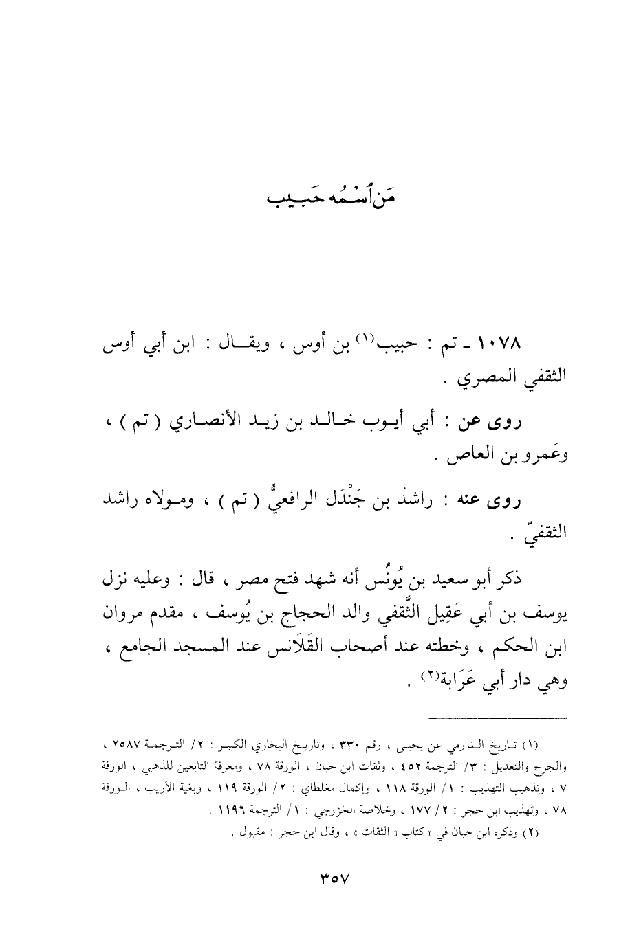 1078 تم: حبيب بن أوس (1) ، ويُقال: ابن أَبي أوس الثقفي المِصْرِي.