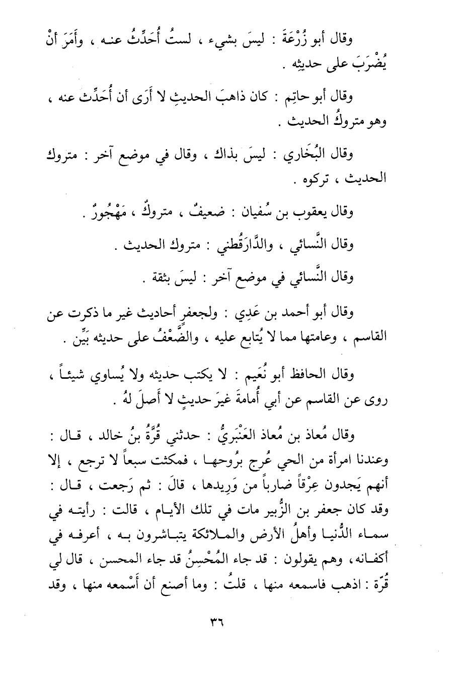 وَقَال أَبُو أَحْمَد بْن عدي: ولجعفر أحاديث غير ما ذكرت عن القاسم، وعامتها مما لا يتابع عليه، والضعف على حديثه بين.
