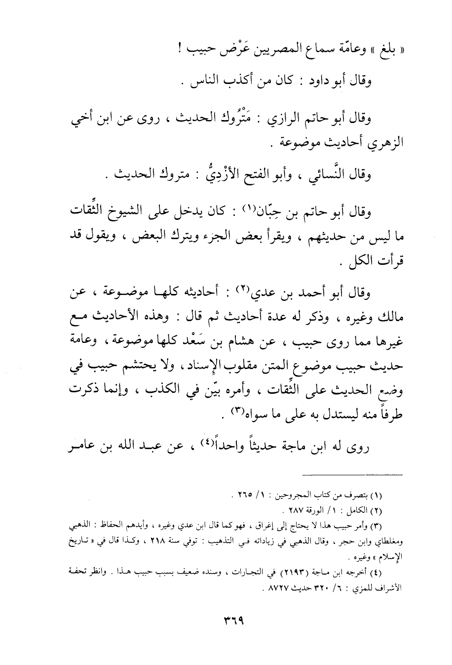 (3) وأمر حبيب هذا لا يحتاج إلى إغراق، فهو كمال قال ابن عدي وغيره، وأيدهم الحفاظ: الذهبي ومغلطاي وابن حجر، وَقَال الذهبي في زياداته في التذهيب: توفي سنة 218، وكذا قال في "تاريخ الاسلام"وغيره.