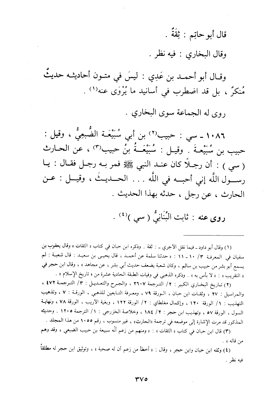 (3) قال أبن حبان في كتاب "الثقات": ومنهم من زعم أنه سبيعة بن حبيب الضبعي، وقد وهم من قاله.
