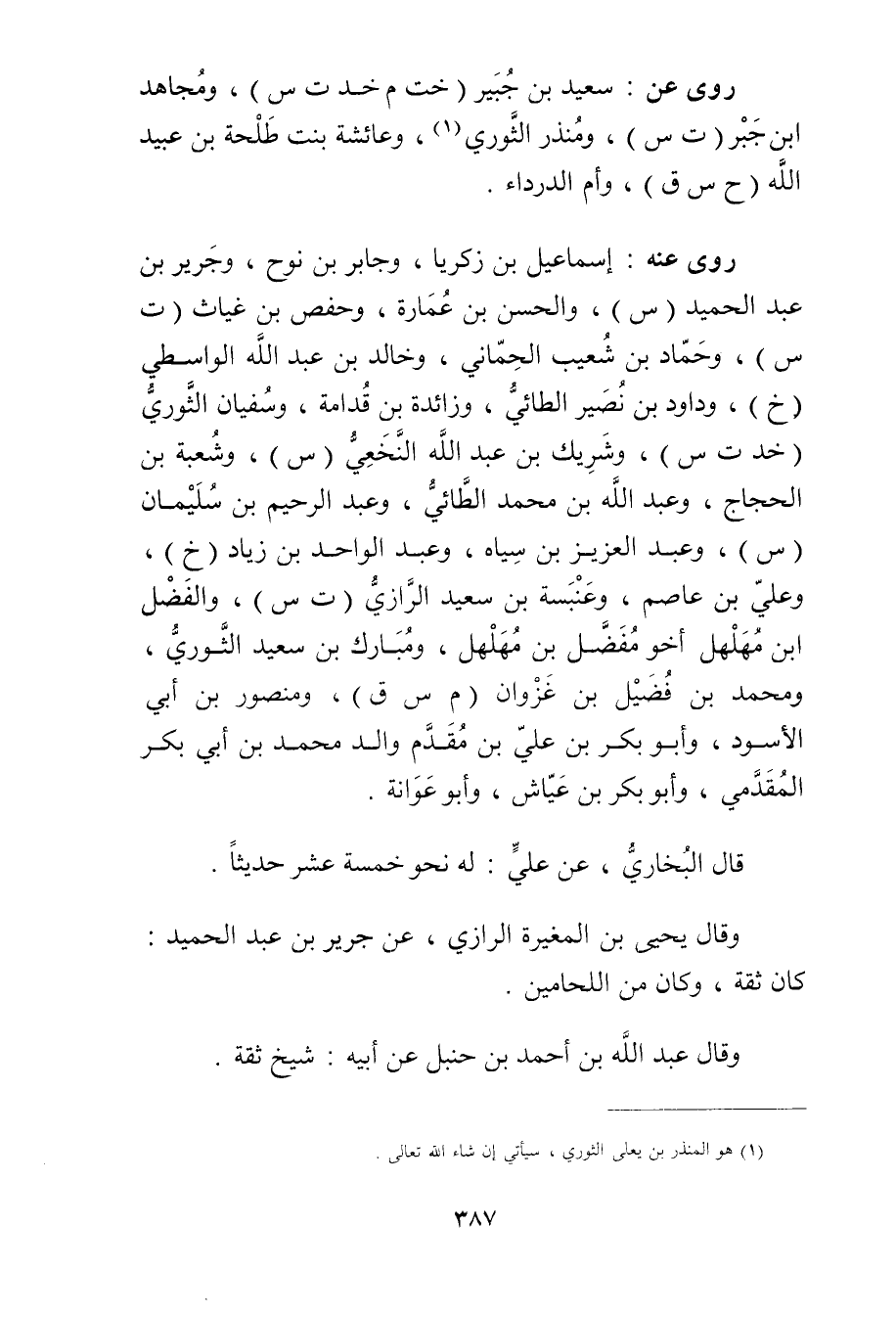 (1) هو المنذر بن يَعْلَى الثوري، سيأتي إن شاء الله تعالى.