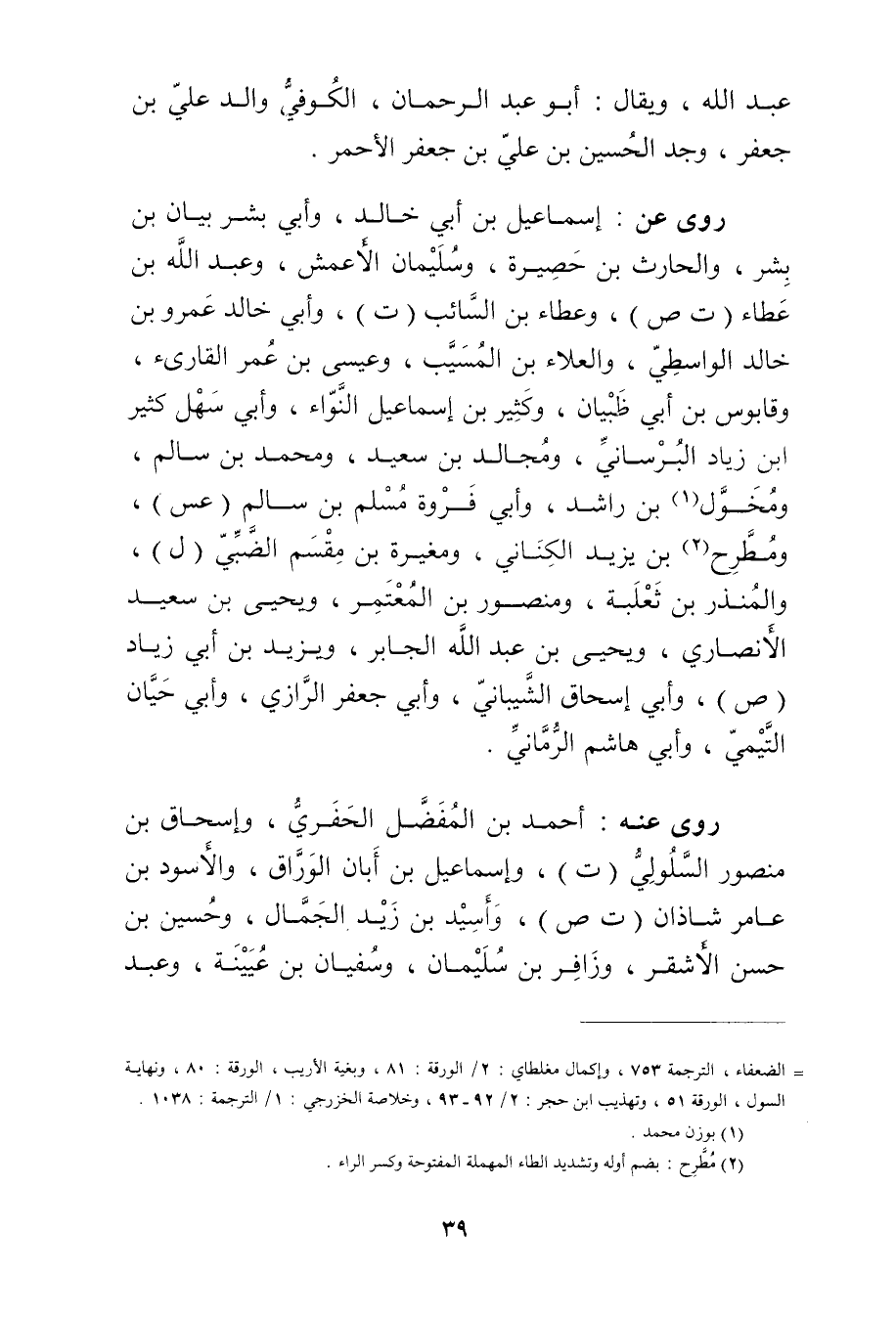 (1) = الضعفاء، الترجمة 753، وإكمال مغلطاي: 2 / الروقة: 81، وبغية الاريب، الورقة: 80، ونهاية السول، الورقة 51، وتهذيب ابن حجر: 2 / 93 92، وخلاصة الخزرجي: 1 / الترجمة: 1038.