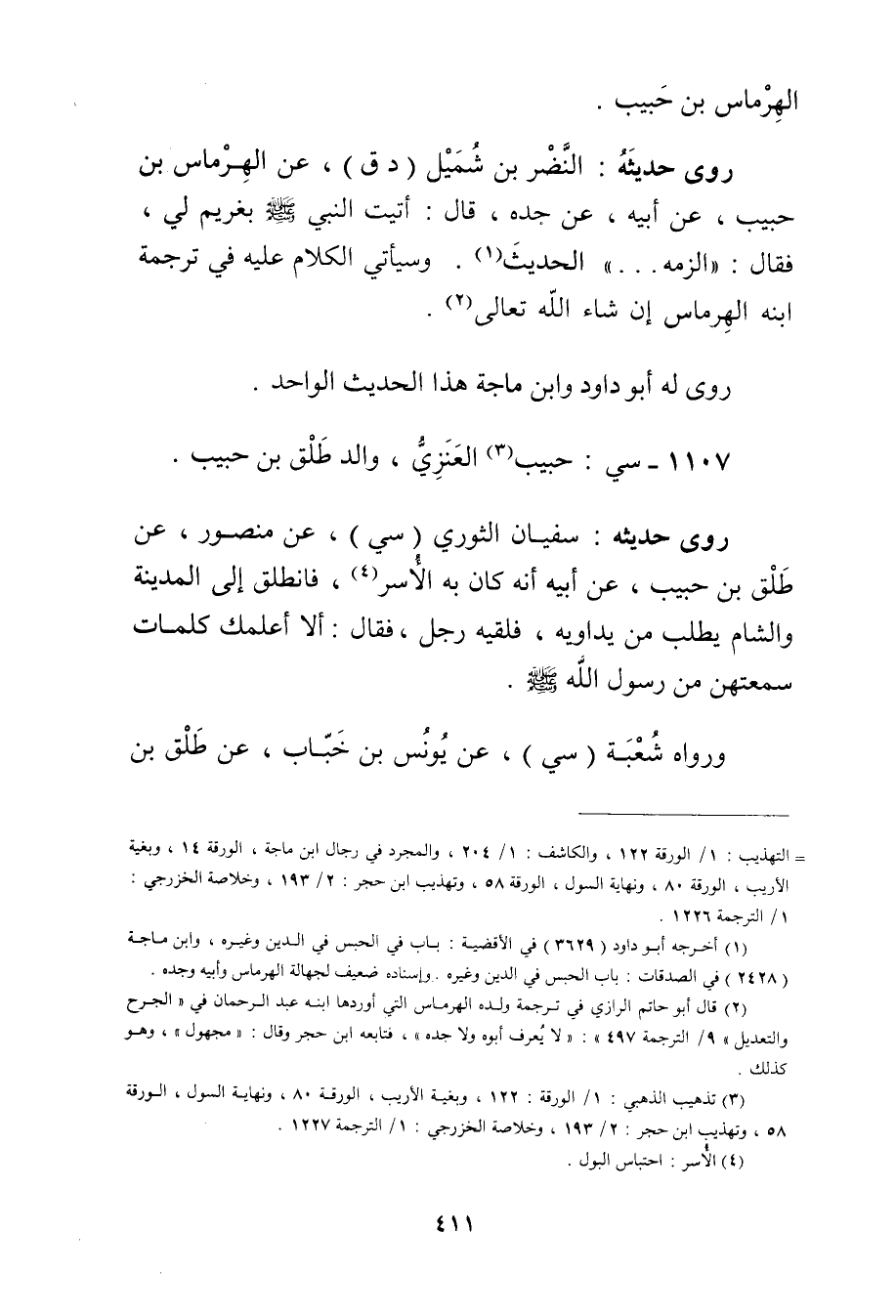 = التهذيب: 1 / الورقة 122، والكاشف: 1 / 204، والمجرد في رجال ابن ماجة، الورقة 14، وبغية الاريب، الورقة 80، ونهاية السول، الورقة 58، وتهذيب ابن حجر: 2 / 193، وخلاصة الخزرجي: 1 / الترجمة 1226.
