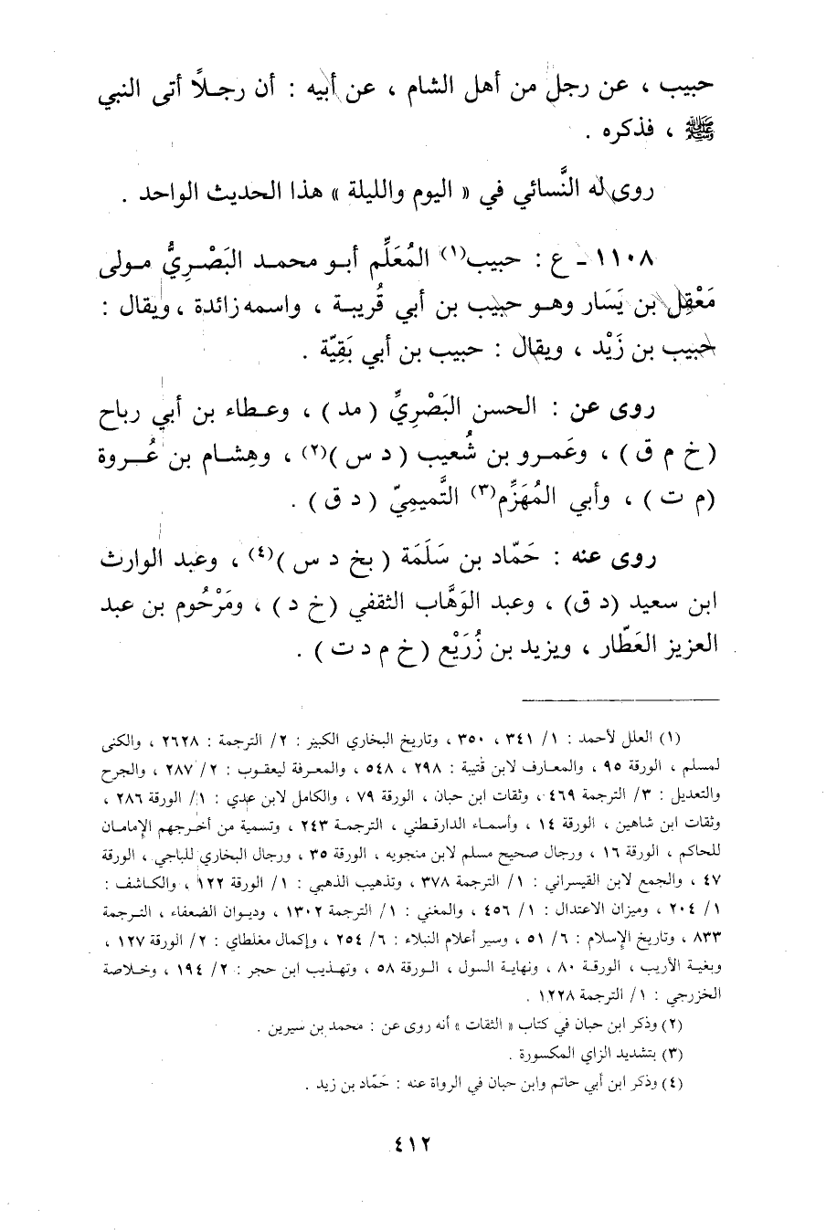 1108 ع: حبيب المعلم أَبُو مُحَمَّد البَصْرِيّ مولى معقل بْن يسار (1) وهو حبيب بْن أَبي قريبة، واسمه زائدة، ويُقال: حبيب بْن زيد، ويُقال: حبيب بْن أَبي بقية.