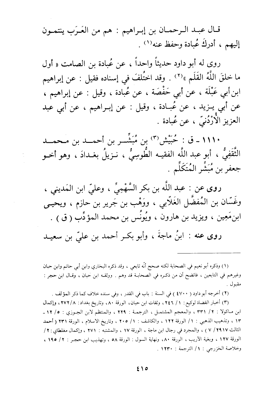 (3) أخبار القضاة لوكيع: 1 / 246، وثقات ابن حبان، الورقة 80، وتاريخ بغداد: 8 / 272، وإكمال ابن ماكولا: 2 / 331، والمعجم المشتمل، الترجمة: 229، والمنتظم لابن الجوزي: 5 / 12 13، وتذهيب الذهبي: 1 / الورقة 122، والكاشف: 1 / 205، وتاريخ الاسلام، الورقة 231 (أحمد الثالث 2917 / 7) ، والمجرد في رجال ابن ماجة، الورقة 17، والمشتبه: 271، وإكمال مغلطاي: 2 / الورقة 127، وبغية الاريب، الورقة 80، ونهاية السول: الورقة 58، وتهذيب ابن حجر: 2 / 195، وخلاصة الخزرجي: 1 / الترجمة: 1230.