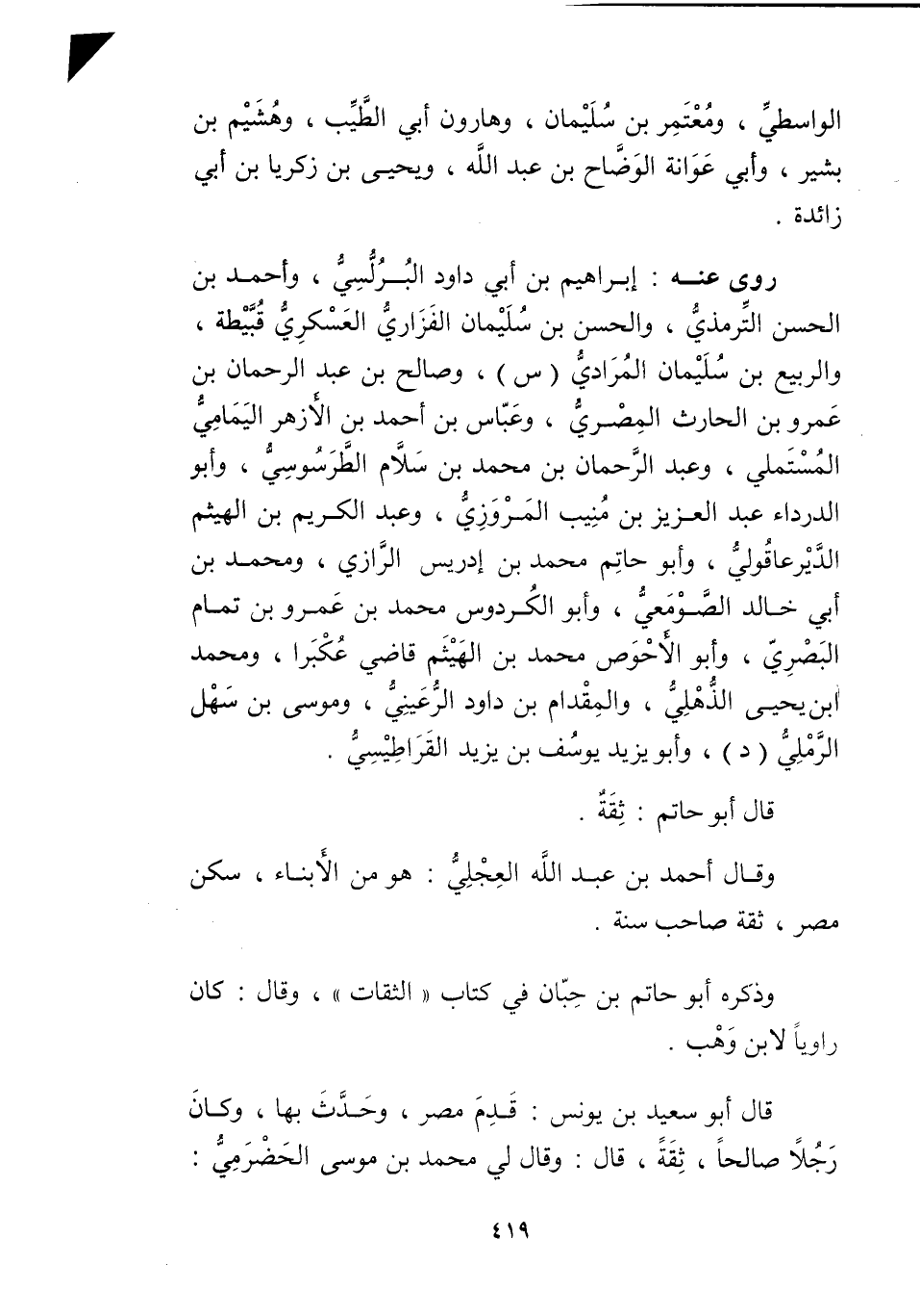 وذكره أَبُو حَاتِم بْن حبان فِي كتاب "الثقات"، وَقَال: كَانَ راويا لابن وهب.