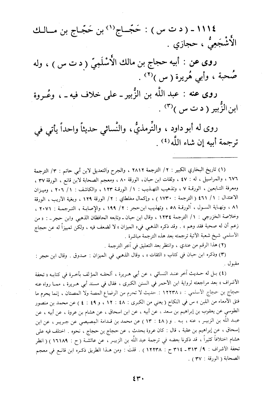 1114 (د ت س) : حجاج بن حجاج بن مالك الأشجعي (1) ، حجازي.