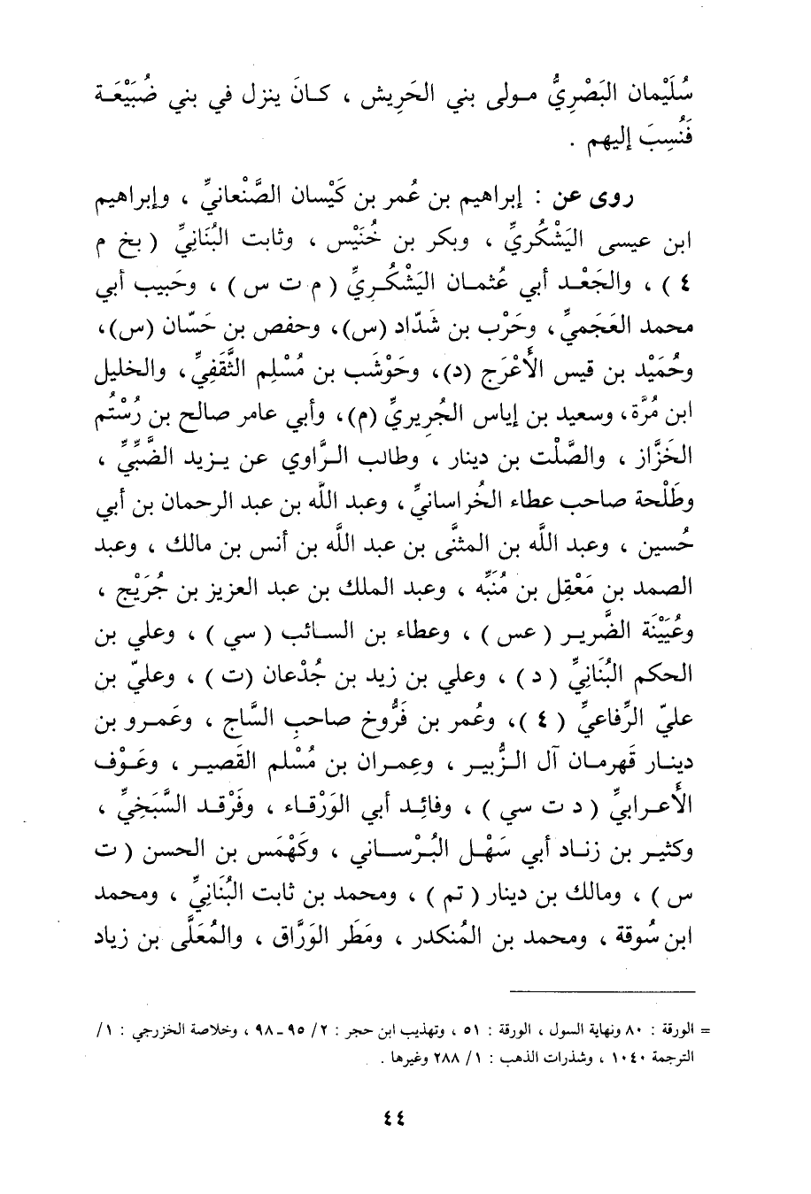 سُلَيْمان البَصْرِيّ مولى بني الحريش، كَانَ ينزل في بني ضبيعة فنسب إليهم.