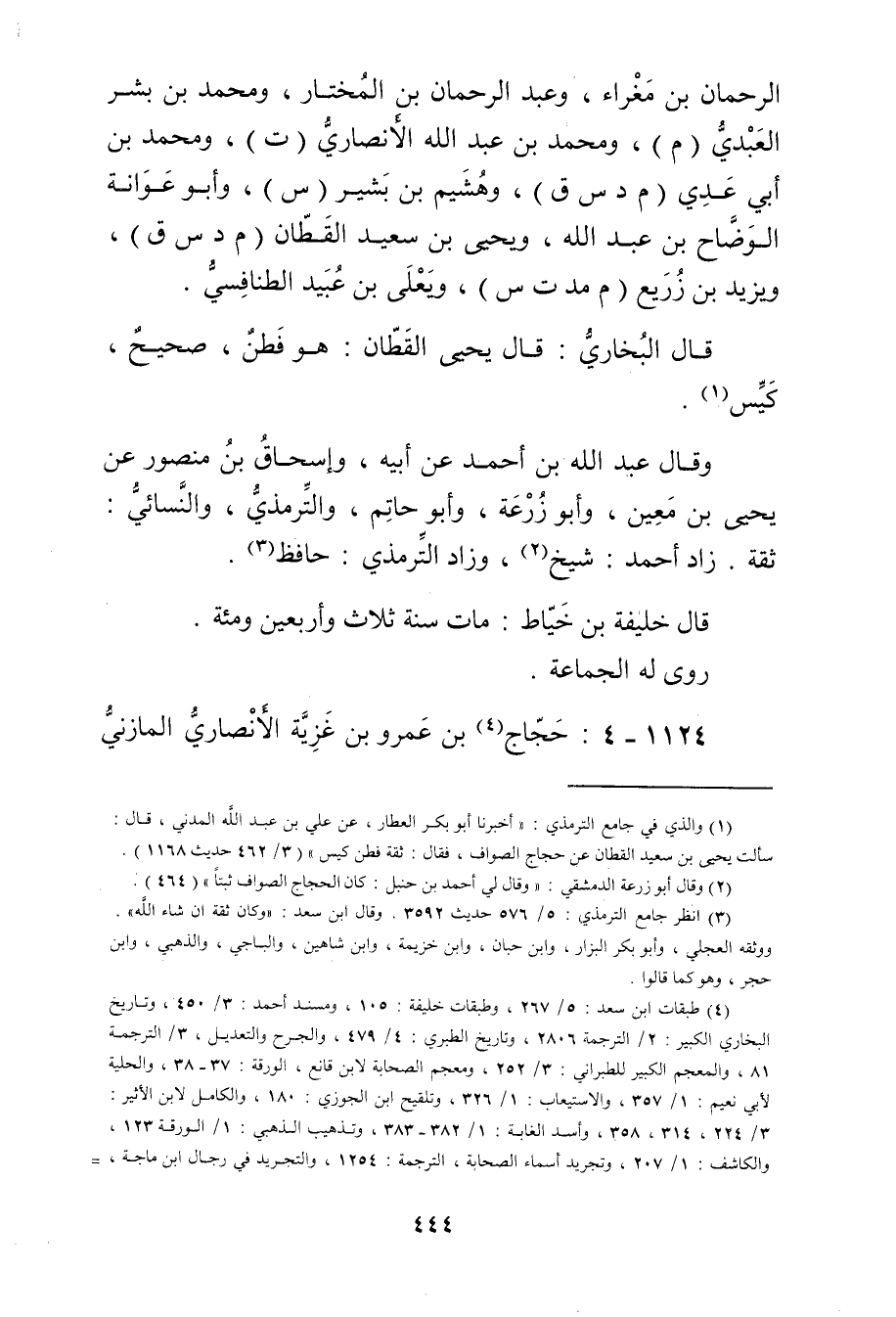 (2) وَقَال أَبُو زُرْعَة الدمشقي: وَقَال لي أَحْمَد بْن حَنْبَلٍ: كَانَ الحجاج الصواف ثبتا" (464) .
