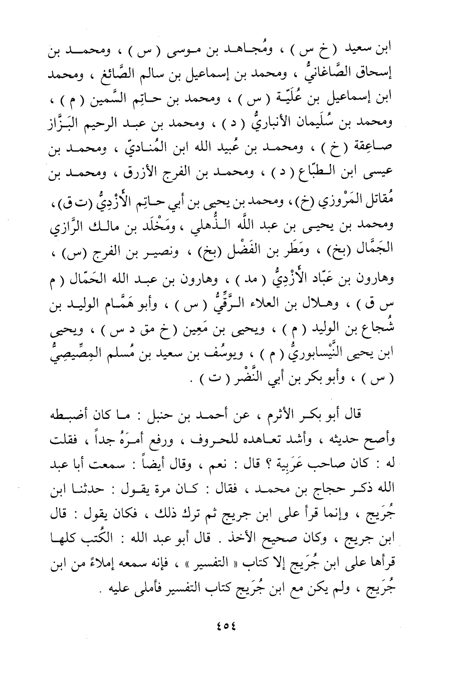 قال أَبُو بكر الأثرم، عَن أحمد بْن حنبل: ما كَانَ أضبطه وأصح حديثه، وأشد تعاهده للحروف، ورفع أمره جدا، فقلت له: كَانَ صاحب عربية؟ قال: نعم، وَقَال أيضا: سمعت أبا عَبْد اللَّهِ ذكر حجاج بْن مُحَمَّد، فَقَالَ: كَانَ مرة يقول: حَدَّثَنَا ابن جُرَيْج، وإنما قرأ على ابن جُرَيْج ثم ترك ذلك، فَكَانَ يقول: قال ابن جُرَيْج، وكَانَ صحيح الأخذ. قال أَبُو عَبْدِ اللَّهِ: الكتب كلها قرأها على ابن جُرَيْج إلا كتاب"التفسير"، فإنه سمعه إملاء من ابن جُرَيْج، ولم يكن مع ابن جُرَيْج كتاب التفسير فأملى عليه.