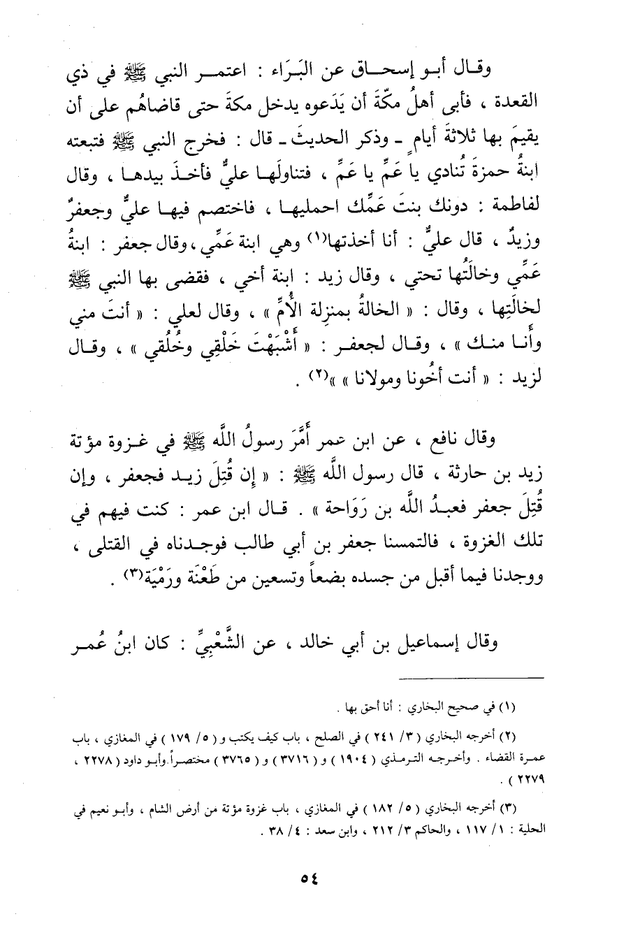 (3) أخرجه البخاري (5 / 182) في المغازي، باب غزوة مؤتة من أرض الشام، وأبو نعيم في الحلية: 1 / 117، والحاكم 3 / 212، وابن سعد: 4 / 38.