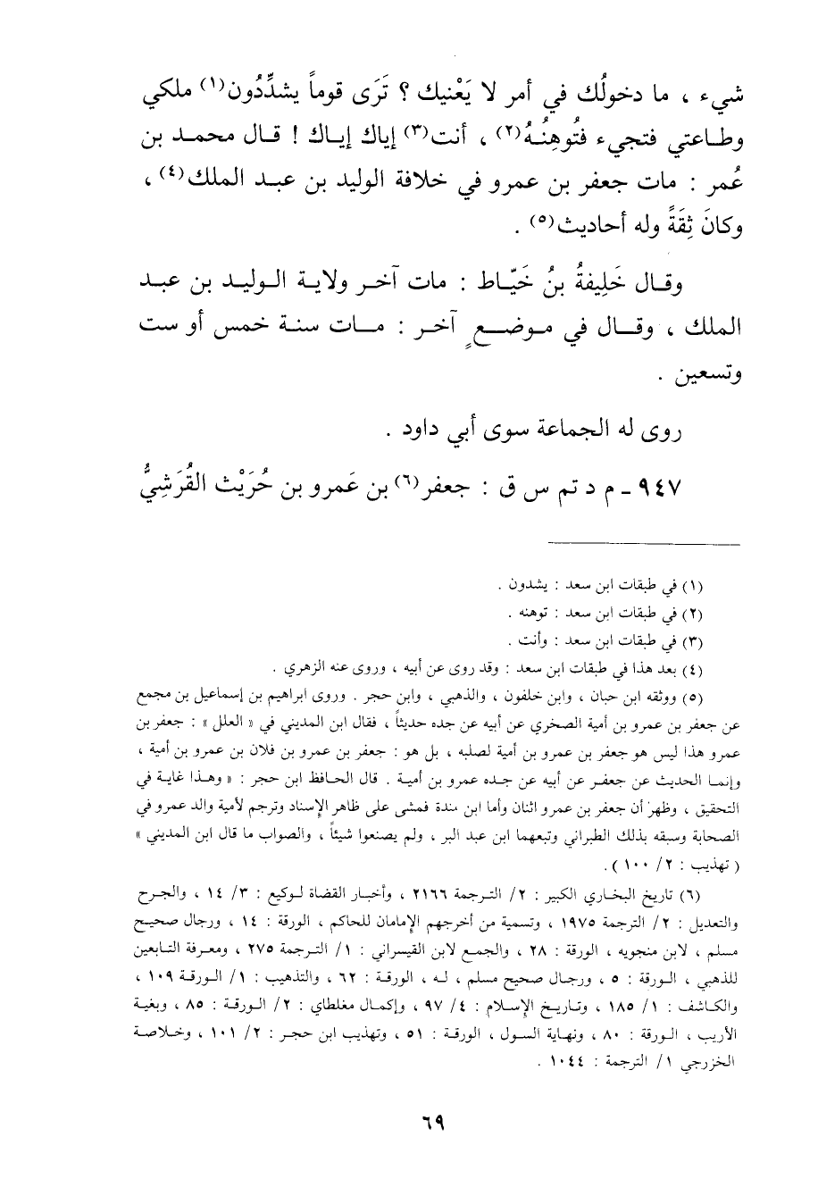 947 م د تم س ق: جعفر بن عَمْرو بن حريث القرشي (6)