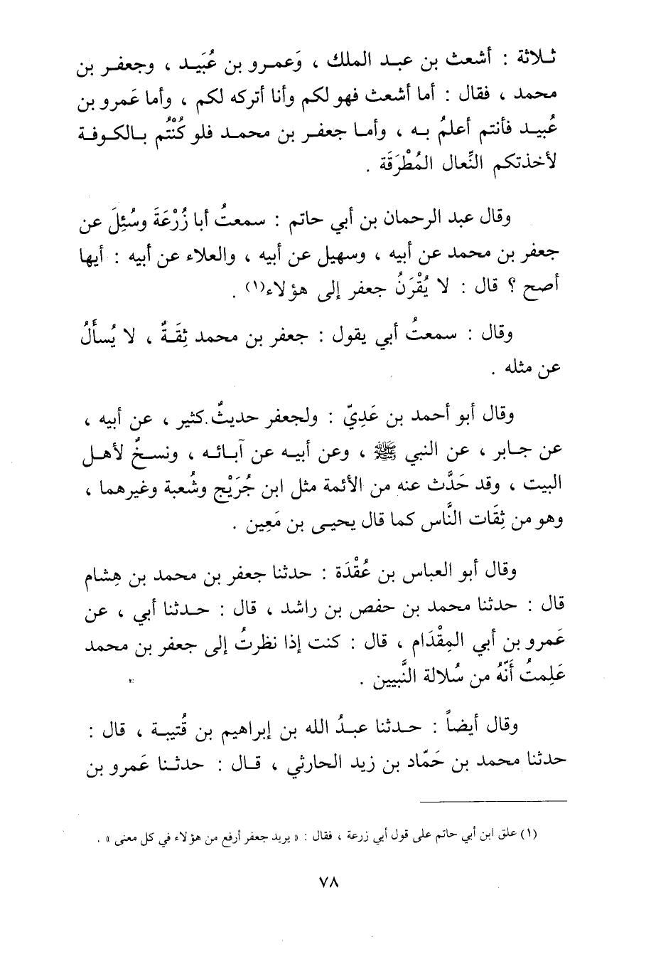(1) علق ابن أَبي حاتم على قول أبي زرعة، فقال: يريد جعفر أرفع من هؤلاء في كل معنى".