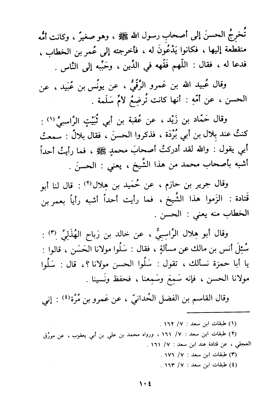 (4) طبقات ابن سعد: 7 / 163.