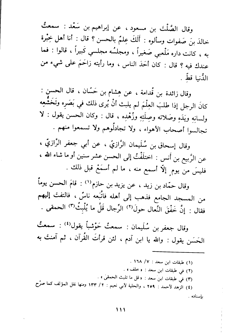 (4) الزهد لأحمد: 259، والحلية لابي نعيم: 2 / 133 ومنها نقل المؤلف كما صرح بإسناده.