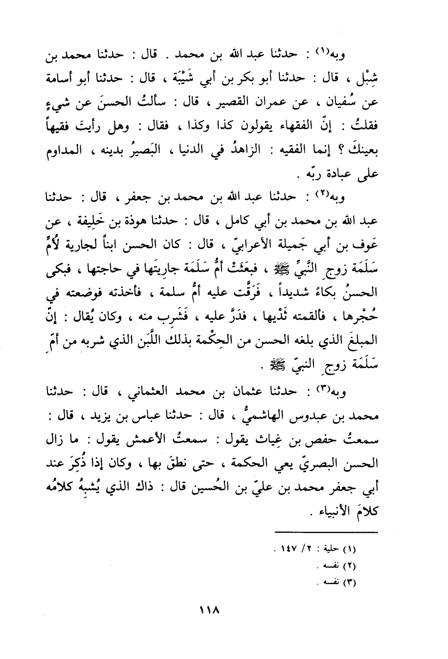 وبه (3) : حَدَّثَنَا عثمان بْن مُحَمَّد العثماني، قال: حَدَّثَنَا مُحَمَّد بْن عبدوس الهاشمي، قال: حَدَّثَنَا عَبَّاس بْن يزيد، قال: سمعت حفص بْن غياث يقول: سمعت الأعمش يقول: ما زال الْحَسَن البَصْرِيّ يعي الحكمة، حتى نطق بها، وكان إذا ذكر عند أبي جعفر مُحَمَّد بْن عَلِيّ بْن الحسين قال: ذاك الذي يشبه كلامه كلام الأنبياء.