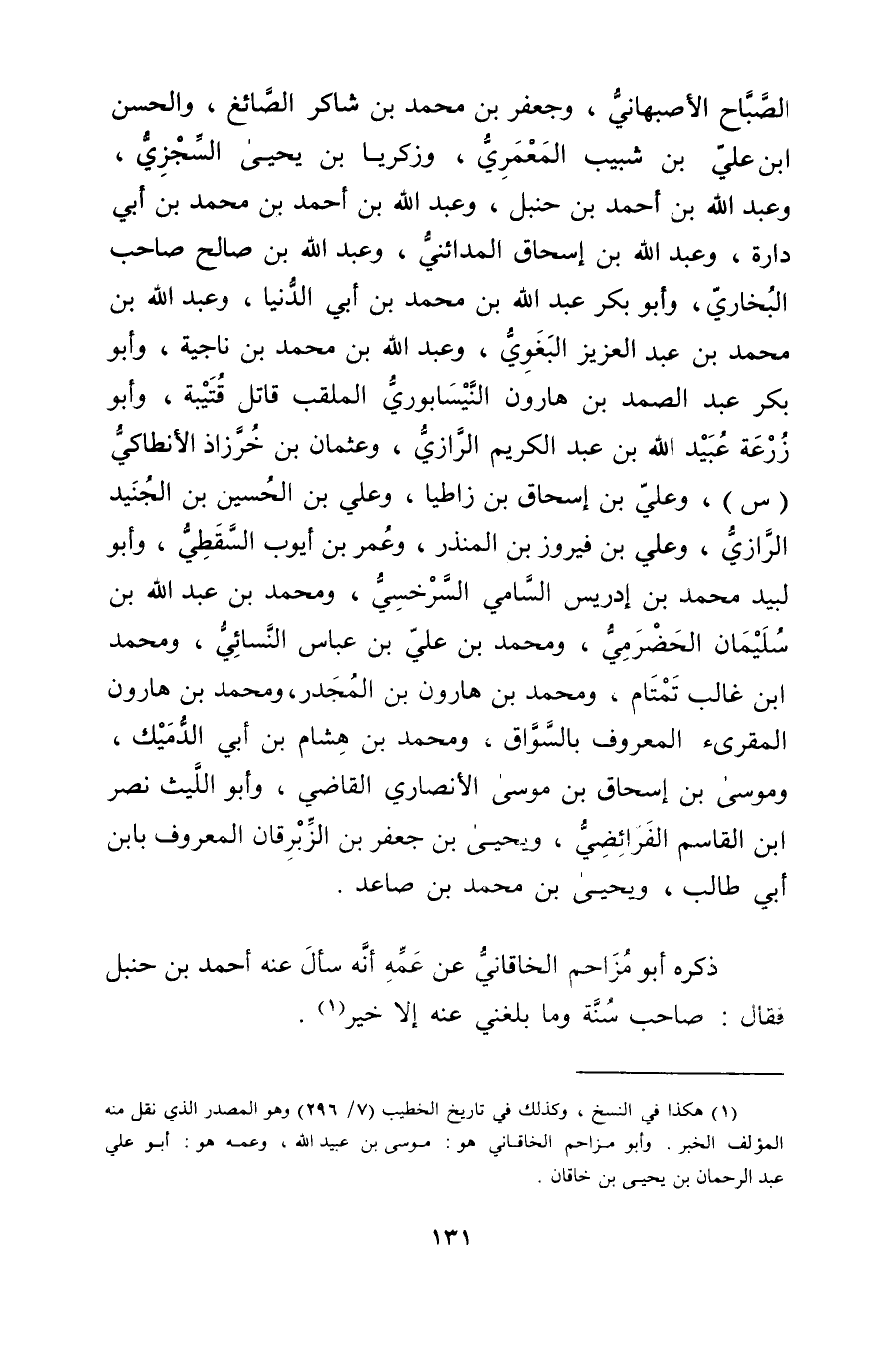 (1) هكذا في النسخ، وكذلك في تاريخ الخطيب (7 / 296) وهو المصدر الذي نقل منه المؤلف الخبر. وأبو مزاحم الخاقاني هو: موسى بن عُبَيد الله، وعمه هو: أَبُو عَلِيّ عَبْد الرحمن بْن يحيى بن خاقان.