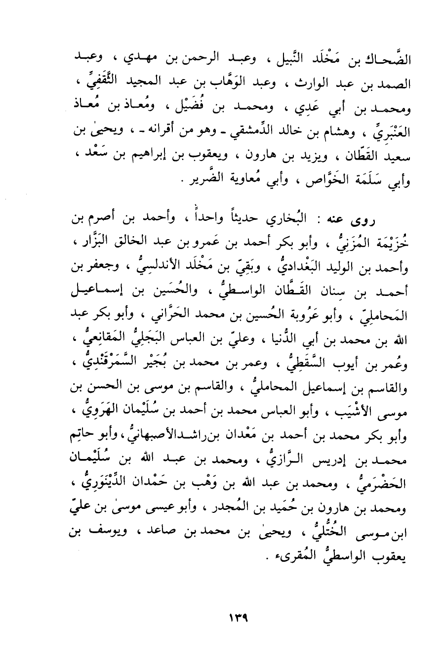 الضحاك بْن مخلد النبيل، وعبد الرحمن بْن مهدي، وعبد الصمد بْن عَبْد الوارث، وعبد الوهاب بْن عَبد المجيد الثقفي، ومحمد بْن أَبي عدي، ومحمد بْن فضيل، ومعاذ بْن معاذ العنبري، وهشام بْن خالد الدمشقي - وهو من أقرانه، ويحيى بْن سَعِيد القطان، ويزيد بن هارون، يعقوب بْن إِبْرَاهِيم بْن سعد، وأبي سلمة الخواص، وأبي معاوية الضرير.