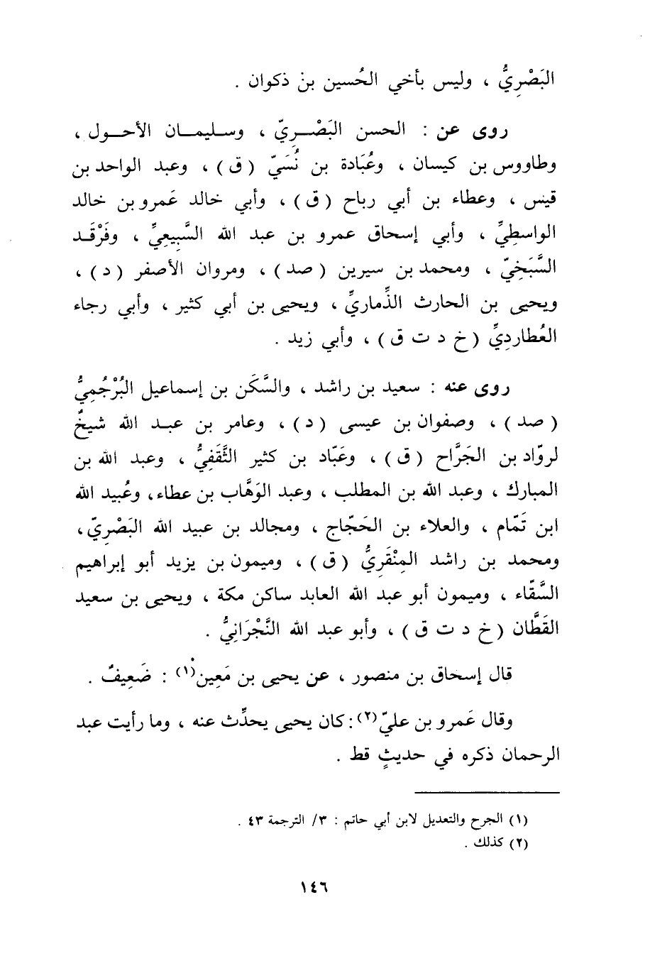البَصْرِيّ، وليس بأخي الحسين بْن ذكوان.