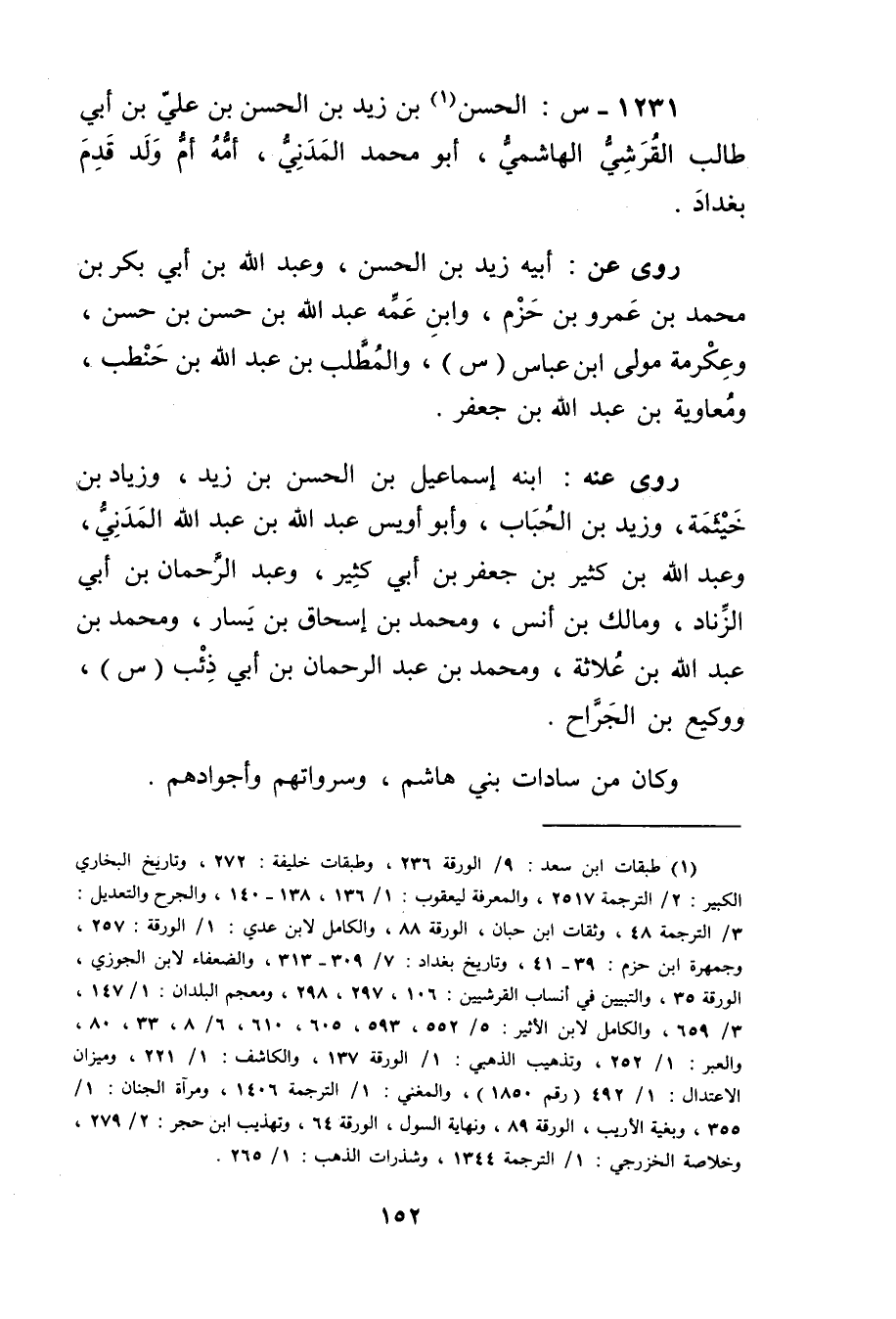 1231 - س: الْحَسَن بن زيد بن الحسن بْن علي بْن أَبي طَالِب القرشي الهاشمي (1) ، أَبُو مُحَمَّد المدني، أمه أم ولد قدم بغداد.