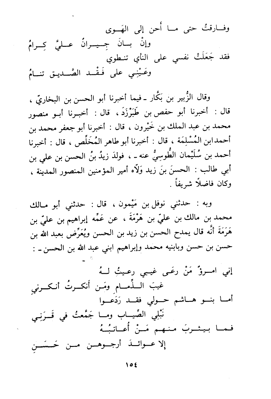وبه: حدثني نوفل بْن ميمون، قال: حدثني أَبُو مالك محمد بْن مالك بْن عَلِيّ بْن هرمة، عنه عمه إِبْرَاهِيم بْن عَلِيّ بْن هرمة أنه قال يمدح الْحَسَن بْن زيد بْن الْحَسَن ويعرض بعبد اللَّه بْن حسن بْن حسن وبابنيه مُحَمَّد وإبراهيم ابني عَبد اللَّه بْن الْحَسَن: