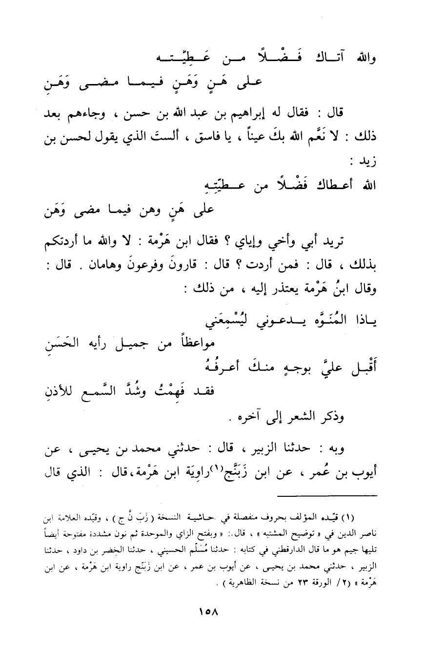 وبه: حَدَّثَنَا الزُّبَيْرُ، قال: حَدَّثَنِي مُحَمَّد بْن يحيى، عن أيوب بْن عُمَر، عن ابْن زبنج (1) راوية ابْن هرمة، قال: الذي قال