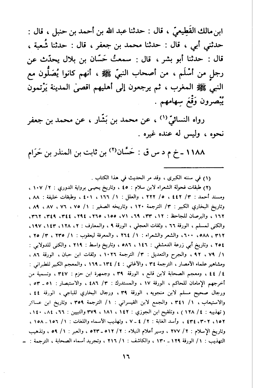 1188 - خ م د س ق: حسان بن ثابت بن المنذر بن حرام (2)