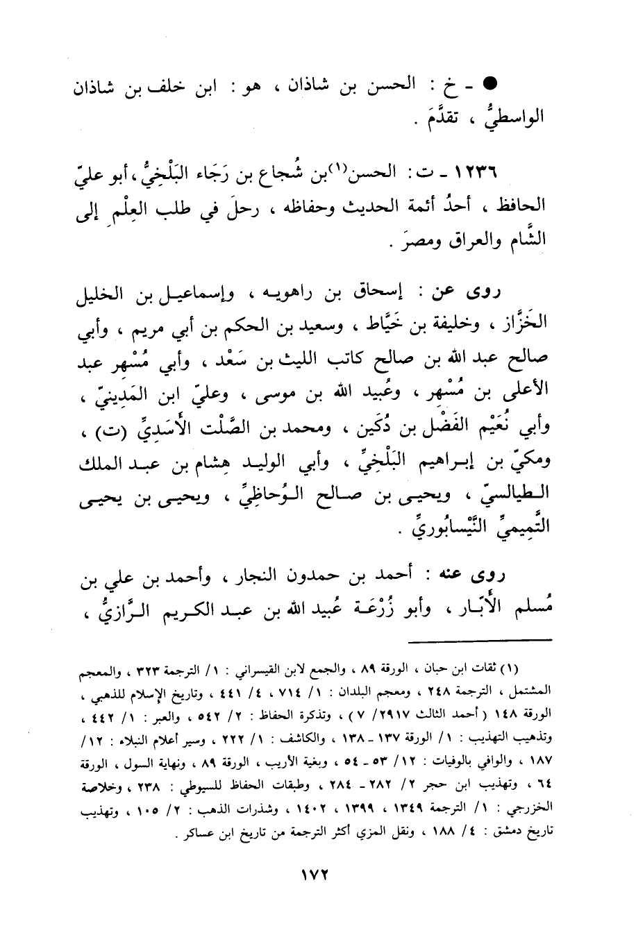 1236 - ت: الْحَسَن بن شجاع بن رجاء البلخي (1) ، أَبُو عَلِيّ الحافظ، أحد أئمة الحديث وحفاظه، رحل في طلب العلم إلى الشام والعراق ومصر.