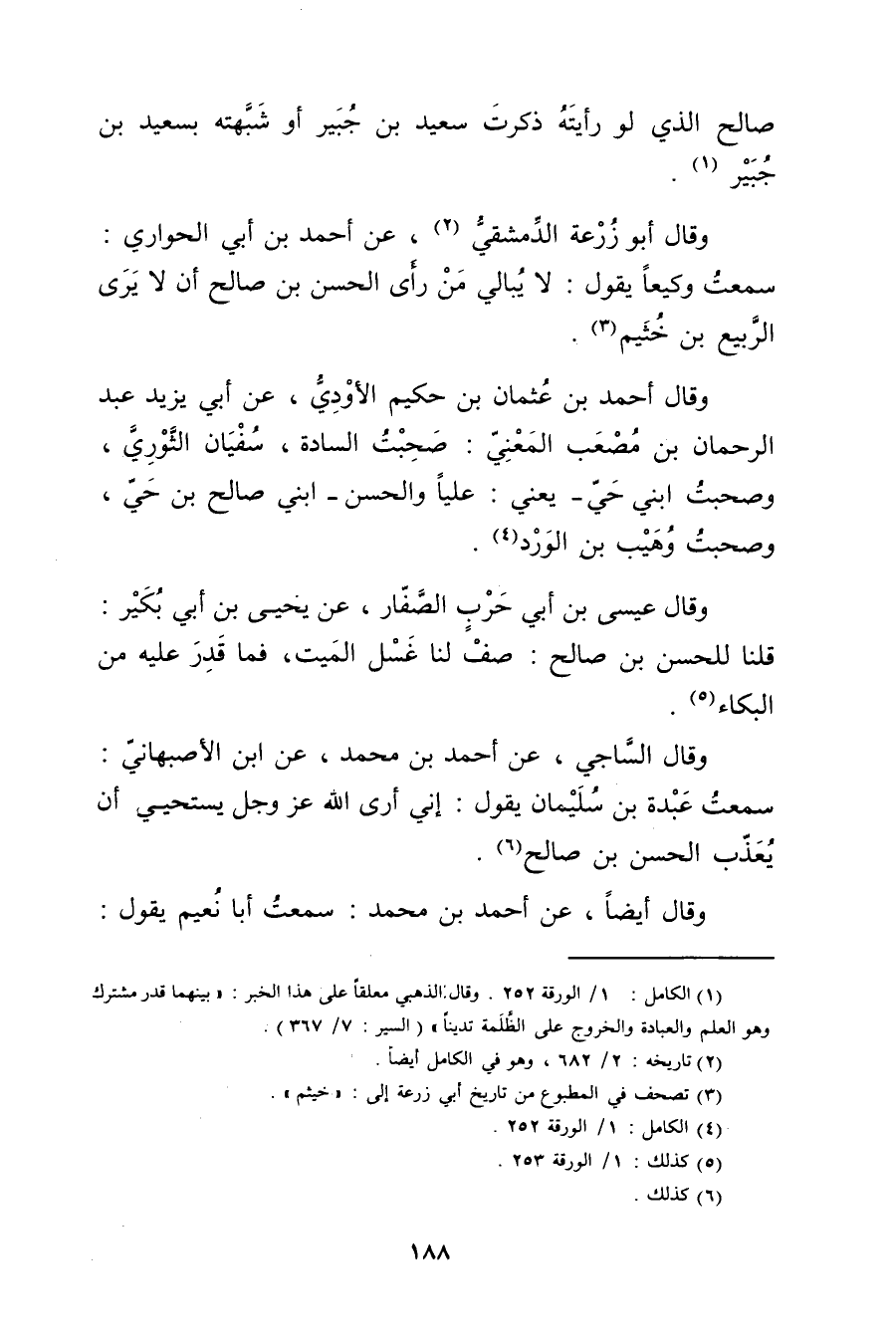 (1) الكامل: 1 / الورقة 252. وَقَال: الذهبي معلقا على هذا الخبر: بينهما قدر مشترك وهو العلم والعبادة والخروج على الظلمة تدينا" (السير: 7 / 367) .