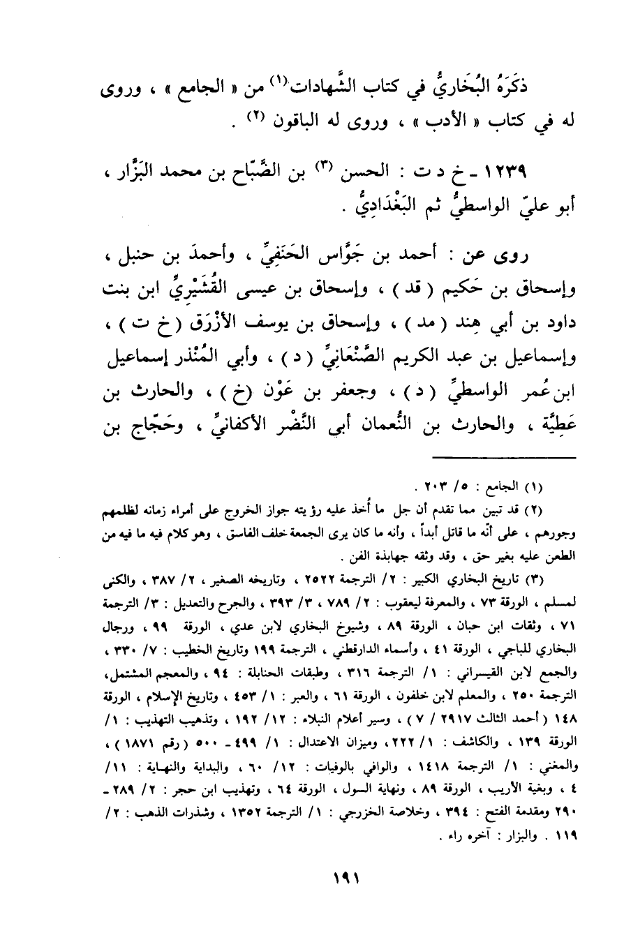 1239 - خ د ت: الْحَسَن بن الصباح بن مُحَمَّد البزار (3) ، أَبُو عَلِيّ الواسطي ثم البغدادي.