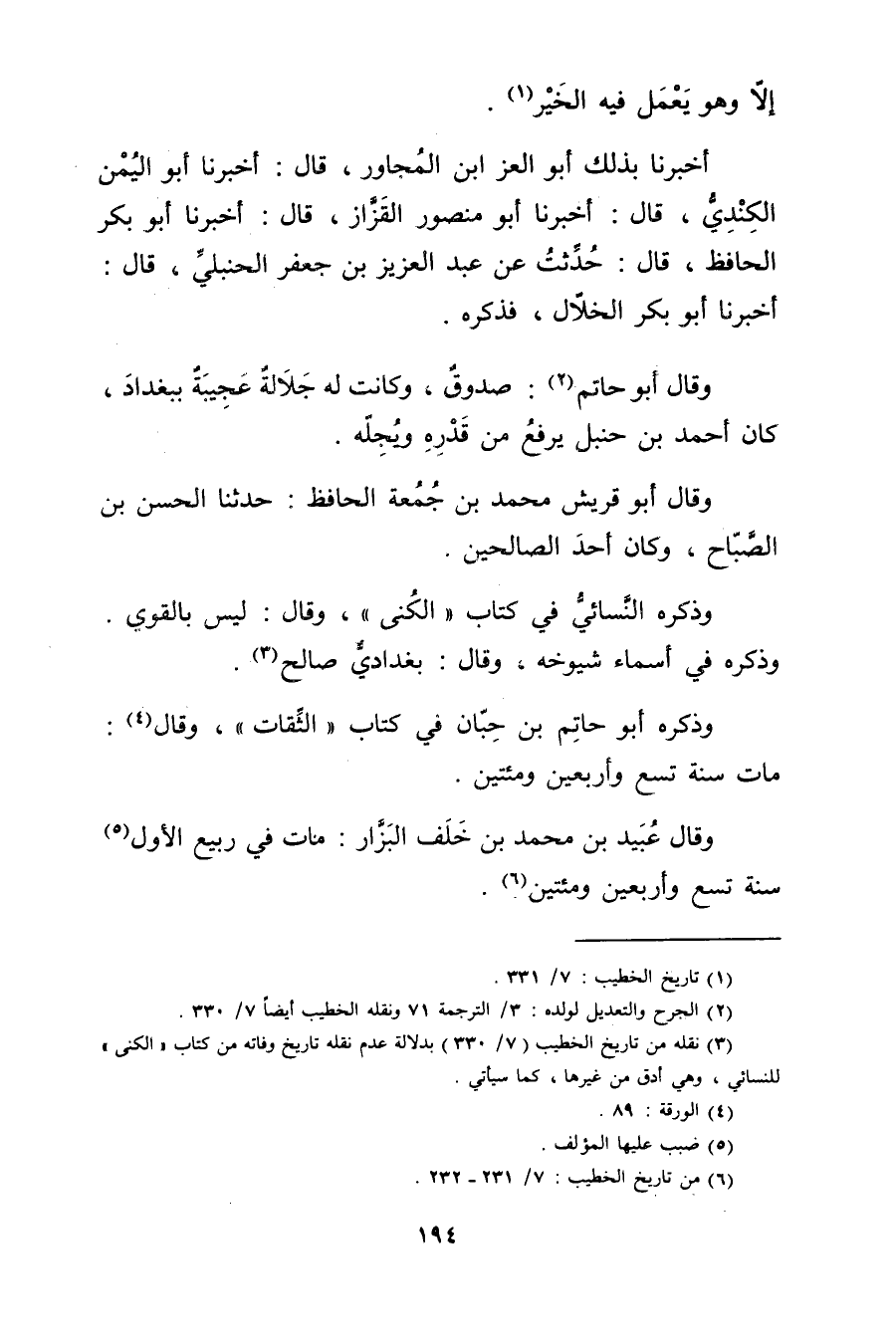 (6) من تاريخ الخطيب: 7 / 231 - 232.