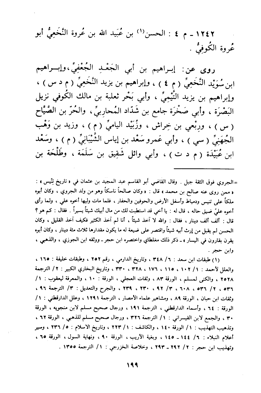 1242 - م 4: الْحَسَن بن عُبَيد اللَّه بن عروة النخعي أَبُو عروة الكوفي (1) .