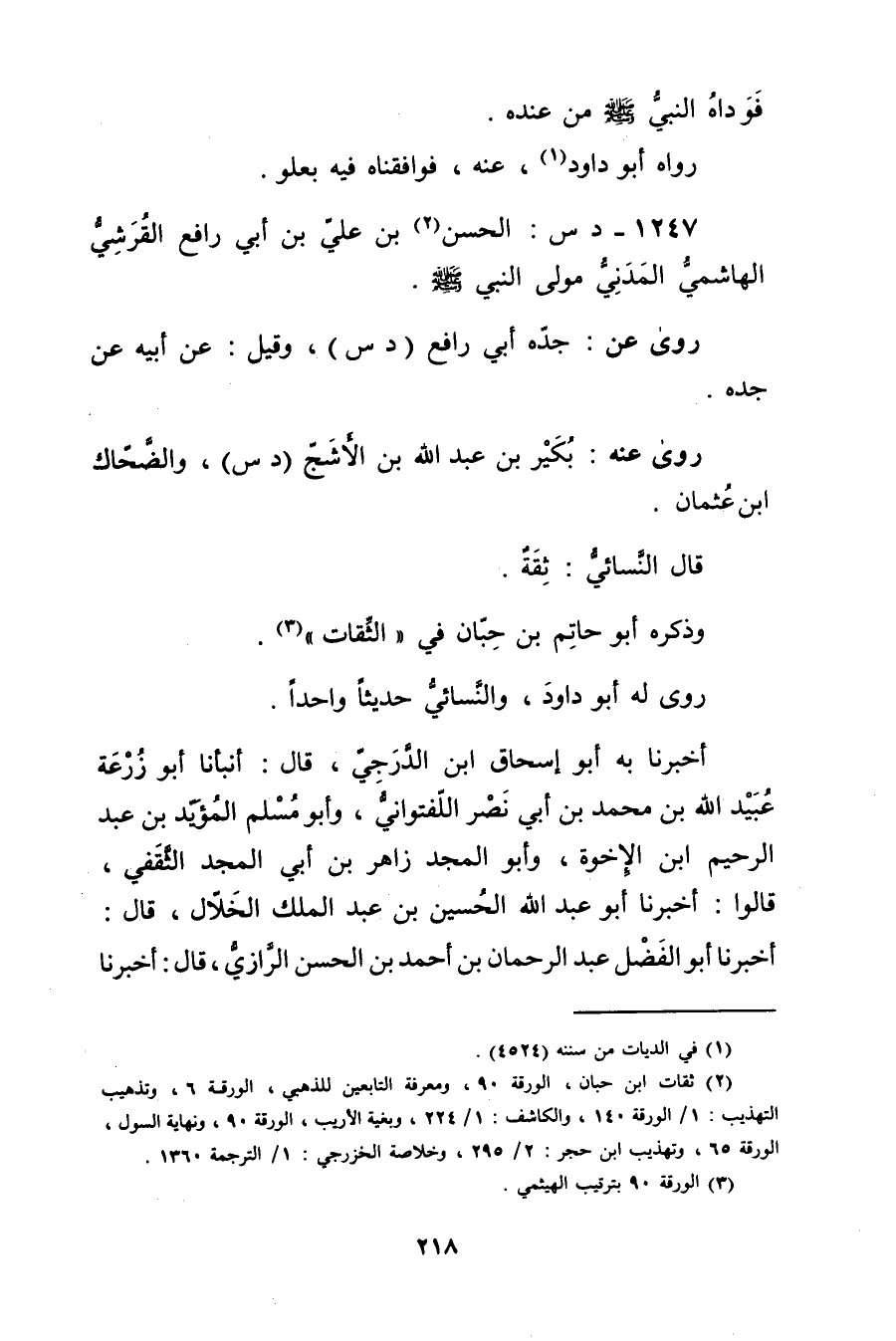 1247 - د س: الْحَسَن بن عَلِيّ بن أَبي رافع القرشي الهاشمي المدني مولى النَّبِيّ صَلَّى اللَّهُ عَلَيْهِ وسلم (2) .