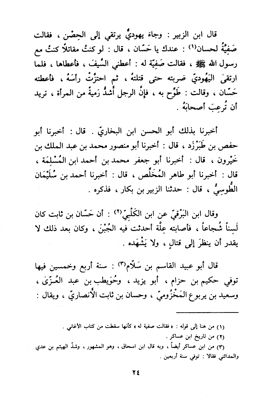 (1) من هنا إلى قوله: فقالت صفية له"كأنها سقطت من كتاب الاغاني.