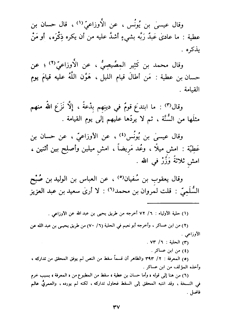 (1) حلية الاولياء: / 72 أخرجه من طريق يَحْيَى بْنَ عَبد اللَّهِ عَنِ الأَوزاعِيّ.
